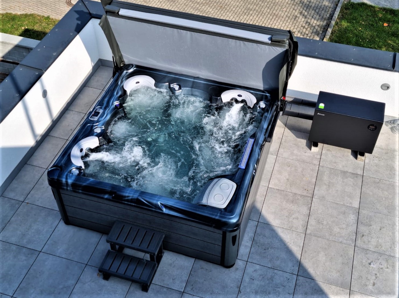 Na rok 2022 jsme pro Vás připravili zvýhodněnou nabídku velké rodinné vířivky s 5 stupňovou izolací pro venkovní instalaci se třemi hydromasážními čerpadly 3HP pro 86 trysek rozložených mezi dvě lehátka, jedno královské sedadlo a 2 menší sedátka. K tomu ještě dalších 14 vzduchových trysek. V základním provedení má vířivka vrchní odnímatelný termokryt, vstupní schůdky, a to vše včetně dopravy, montáže a zaškolení. Protože se snažíme našim zákazníkům dodávat maximálně ekonomicky úsporné vířivky, připravili jsme jako bonus ke každé objednávce tepelné čerpadlo s invertorem o maximálním výkonu 7,2kW a ovládáním přes wifi.